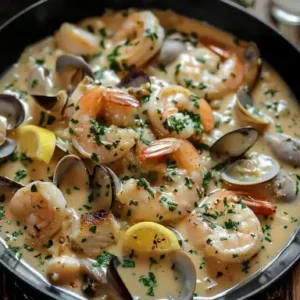 Un plat de fruits de mer luxueux et réconfortant, parfait pour une occasion spéciale ou un dîner élégant. Les crevettes, les coquilles Saint-Jacques, le poisson blanc et les moules sont …