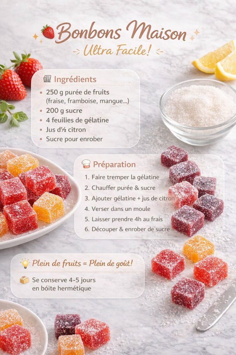 Ces bonbons maison sont la preuve qu’il est possible de se faire plaisir avec des recettes simples, rapides et dĂ©licieuses. Une fois testĂ©s, tu ne voudras plus jamais acheter ceux du commerce !