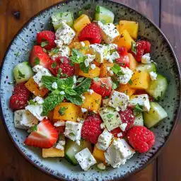 Description:Cette salade rafraîchissante et vibrante combine la douceur des fraises et du melon avec le croustillant du concombre, du fromage feta salé et une délicieuse vinaigrette sucrée. C’est un mélange …
