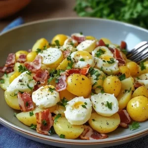Description : Cette salade de pommes de terre revisitée est un plat convivial et savoureux, parfait pour un déjeuner sur le pouce, un pique-nique ou un accompagnement gourmand. Les pommes …