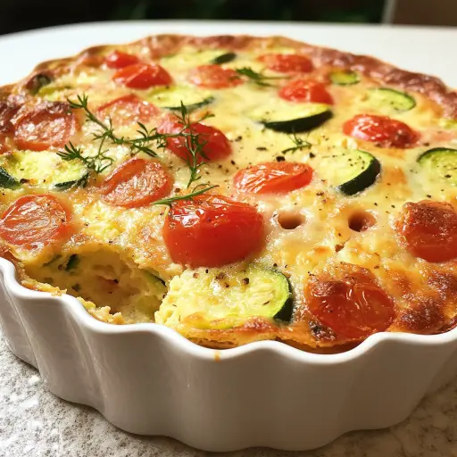 Description Ce clafoutis salé est une variation estivale et gourmande du clafoutis traditionnel. Les courgettes, le thon et les tomates cerises s’associent pour créer un plat savoureux, léger et facile à préparer. Parfait pour un déjeuner, un dîner léger ou un pique-nique, ce clafoutis est une explosion de saveurs méditerranéennes en bouche. La touche de curry apporte une note chaleureuse et exotique qui rehausse l’ensemble.