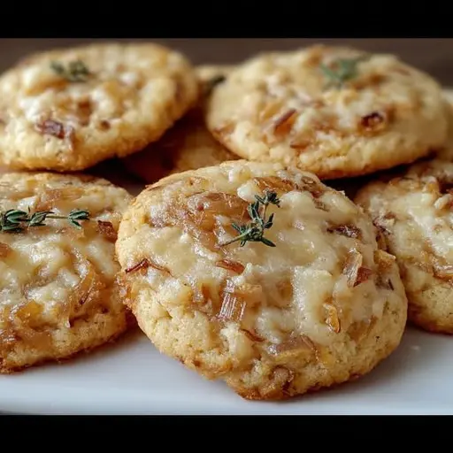 De délicieux cookies salés, parfaits pour un apéritif gourmand ou une collation savoureuse. L’association des oignons caramélisés, du comté et du thym offre une explosion de saveurs.