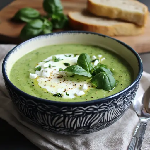 Gaspacho de Courgettes et Basilic avec un Nuage de Chèvre Frais