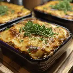 Cette recette de moussaka grecque très facile est un incontournable pour tous ceux qui aiment les saveurs méditerranéennes. Avec des couches de pommes de terre tendres, d’aubergines rôties, de sauce à la viande savoureuse et de béchamel crémeuse, ce plat est un véritable délice culinaire qui vous transportera sur les rivages ensoleillés de la Grèce à chaque bouchée.