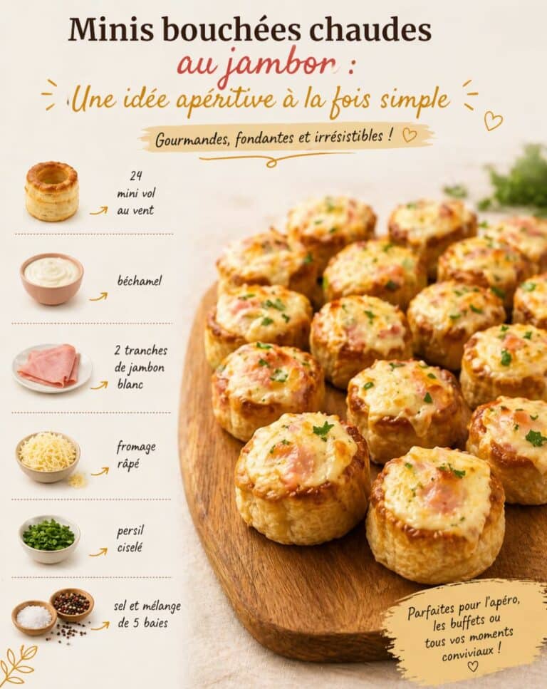 Simples, rapides et délicieusement fondantes, ces minis bouchées au jambon sont parfaites pour un apéritif convivial. Avec leur cœur crémeux à la béchamel et leur surface légèrement gratinée, elles séduisent à coup sûr tous les gourmands.