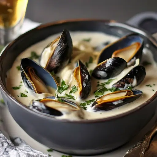 Rien ne dit “convivialité” comme un grand plat de moules fumantes, nappées d’une sauce onctueuse à la crème d’ail. Cette recette traditionnelle française revisite les fameuses “moules marinières” en y ajoutant une touche crémeuse et confite qui sublime les saveurs marines. Le mariage du vin blanc, de l’ail fondant et du persil en fait un mets raffiné, mais simple à réaliser. Une recette parfaite pour un dîner gourmand ou un déjeuner d’été.