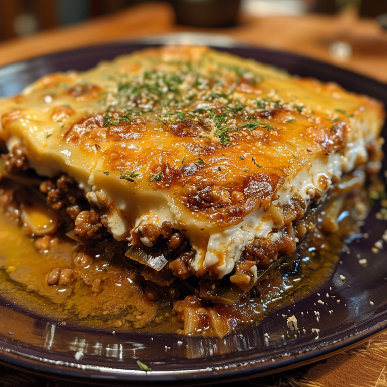 Cette recette traditionnelle de moussaka grecque est un plat réconfortant et savoureux qui combine des couches d’aubergines, de pommes de terre, de sauce à la viande assaisonnée et de sauce béchamel crémeuse. C’est un repas copieux et satisfaisant, parfait pour les dîners de famille ou les réunions spéciales.