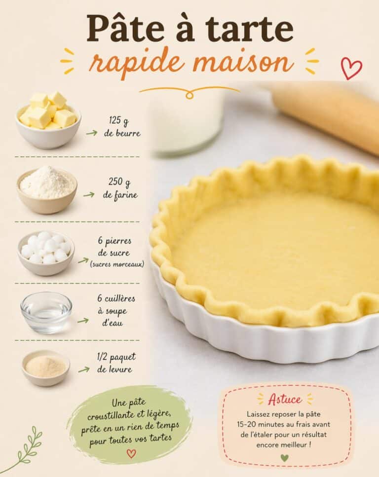 Cette pâte est idéale pour gagner du temps en cuisine et ne nécessite aucun temps de repos.