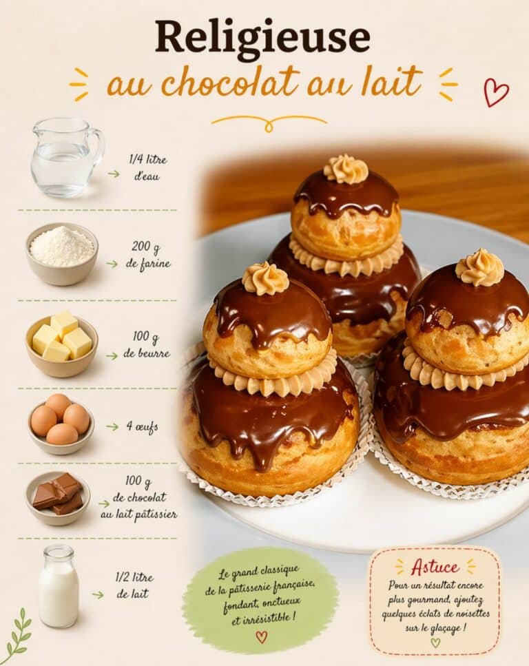 Élégante, gourmande et incontournable de la pâtisserie française, la religieuse au chocolat au lait séduit par ses choux légers, sa crème onctueuse et son glaçage brillant. Une recette accessible pour réaliser chez soi un dessert aussi beau que délicieux.