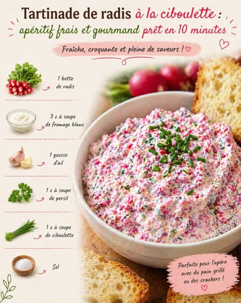 Fraîche, légère et pleine de saveurs, cette tartinade de radis à la ciboulette est idéale pour un apéritif rapide et gourmand. Facile à préparer, elle apporte une touche de fraîcheur parfaite à tartiner ou à déguster en dip.